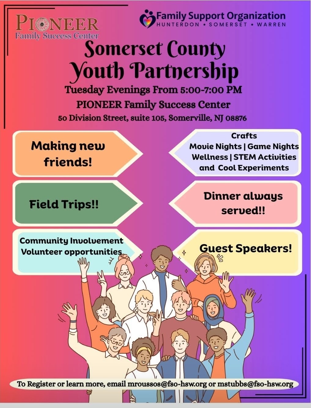 Somerset County Youth Partnership Pioneer Success Center, 50 Division Street,Suite 33, Somerville, NJ, United States